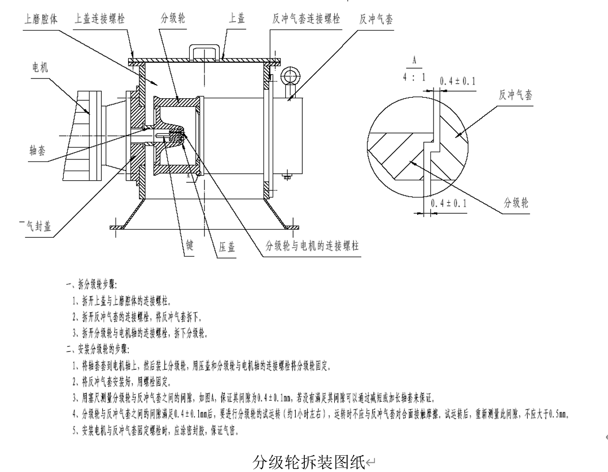 氣流粉碎機(jī)的分級(jí)輪的拆卸與安裝