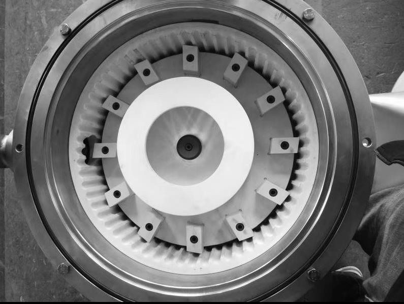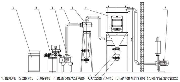 機(jī)械磨的物料由加料系統(tǒng)均勻的送入機(jī)械粉碎室,受到高速旋轉(zhuǎn)的粉碎盤(pán)的強(qiáng)烈沖擊,同時(shí)受到離心力的作用,與粉碎齒圈發(fā)生碰撞,受到剪切、摩擦、碰撞等多種綜合力的作用,使物料粉碎,被粉碎的物料隨氣流運(yùn)動(dòng)到分級(jí)區(qū),通過(guò)變頻調(diào)節(jié)的分級(jí)輪,對(duì)粗細(xì)物料進(jìn)行分離,符合細(xì)度要求的產(chǎn)品隨氣流進(jìn)入旋風(fēng)收集器和除塵器收集,粗顆粒返回粉碎區(qū)繼續(xù)粉碎。